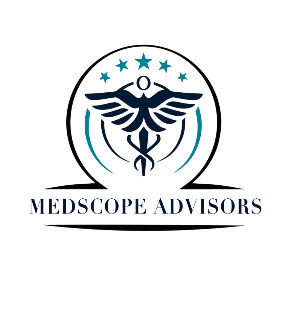 Logo featuring a caduceus with wings, a medical staff, and the text "MedScope Advisors" underneath.